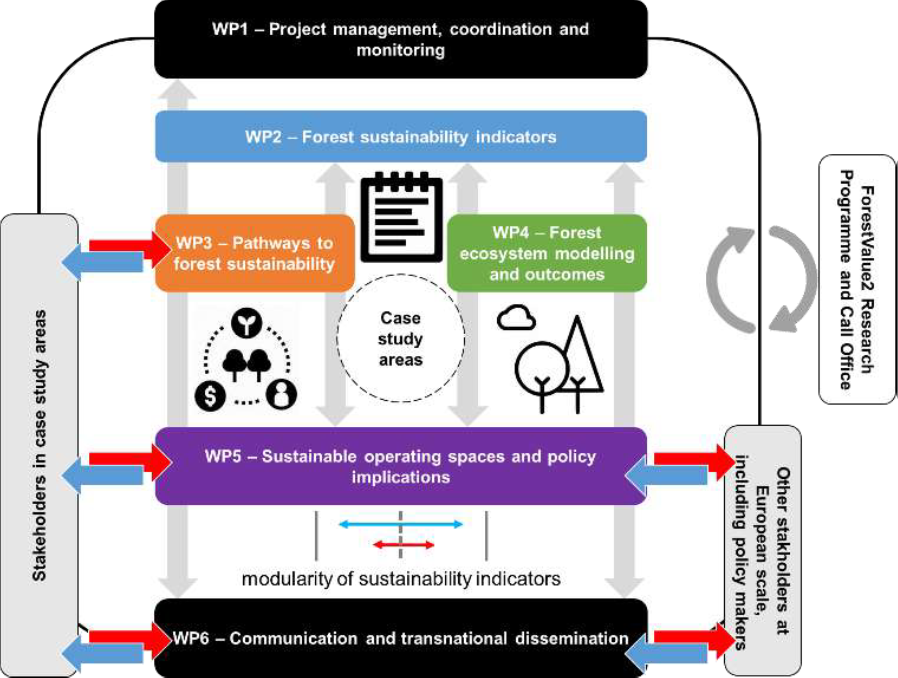 WP1 deals with project reporting and communication between the project coordinator, WP leaders and project partners to ensure smooth progress of project activities, transparent exchange of data and information of reporting material, including exchanges and updates with ForestValue2 Research Programme and Call Office. WP1 establish an Internal Advisory Board ensuring regular correspondence, within and outside the project, the delivery of project outcomes by set deadlines, and the effectiveness, quality and impact of project activities and outcomes. WP1 also has the task to prepare and implement plans for monitoring risks, data policy, IPR, gender representation and ethics issues.